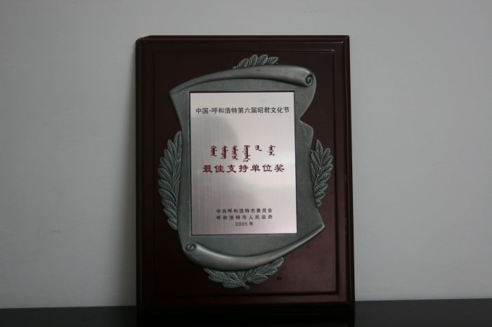 2005年呼和浩特第六屆昭君文化節(jié)最佳支持單位獎