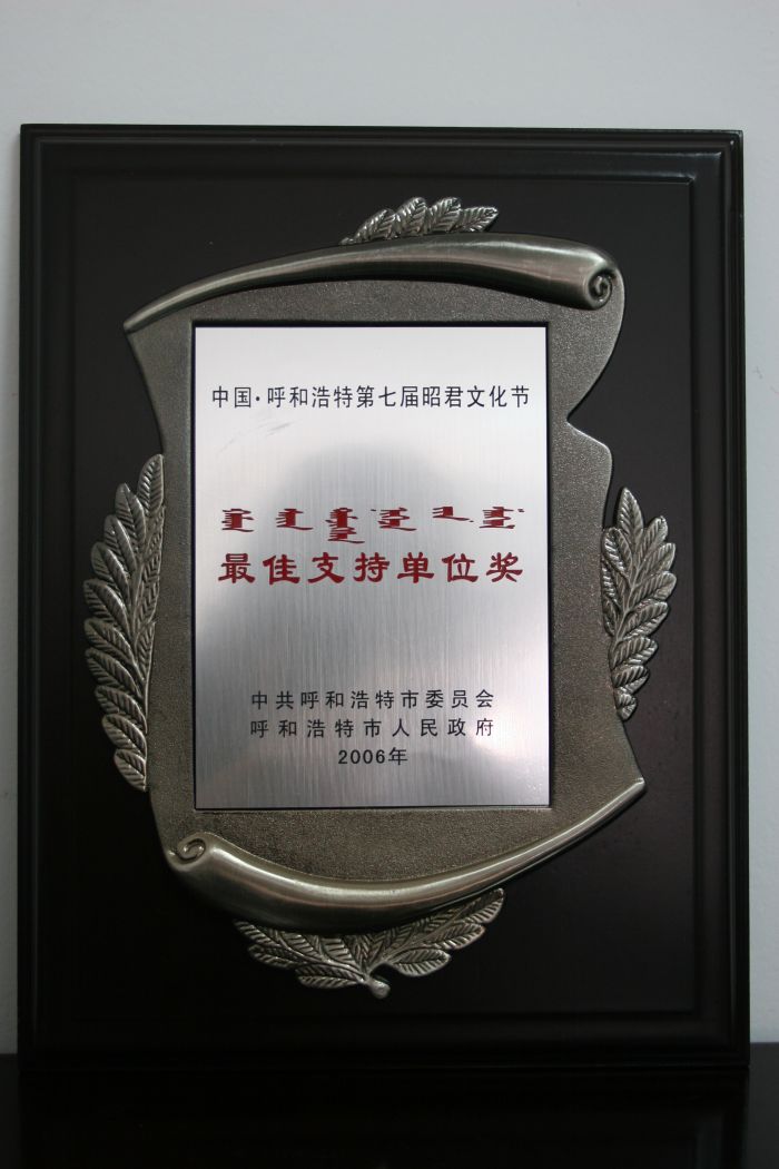 2006年呼和浩特第七屆昭君文化節(jié)最佳支持單位獎
