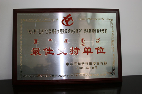 城發(fā)公司獲得2003年城發(fā)杯宣傳全區(qū)兩個文明建設(shè)經(jīng)驗交流會優(yōu)秀新聞作品大獎賽最佳支持單位