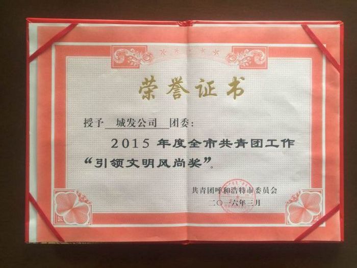 城發(fā)團(tuán)委獲得“2015年度全市共青團(tuán)工作引領(lǐng)文明風(fēng)尚獎”