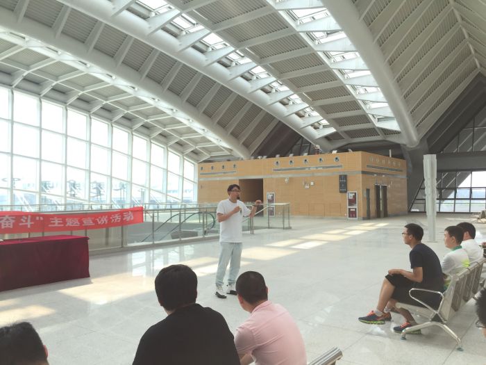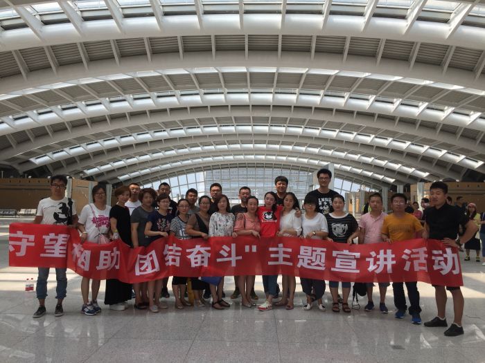 宣講活動由總公司團(tuán)委書記趙杰主持。各分公司團(tuán)支部的一名代表進(jìn)行宣講,再由趙杰書記進(jìn)行總結(jié)。趙杰帶領(lǐng)大家回顧了城發(fā)公司的發(fā)展歷史,進(jìn)一步學(xué)習(xí)領(lǐng)會了“守望相助 團(tuán)結(jié)奮斗”的精神。隨后由各支部組隊(duì),每一個支部為一個團(tuán)隊(duì),圍繞“團(tuán)結(jié)”進(jìn)行“烽火傳書”信息傳遞拓展活動。歷經(jīng)2個多小時的團(tuán)隊(duì)合作,金橋分公司團(tuán)支部獲得了第一名。