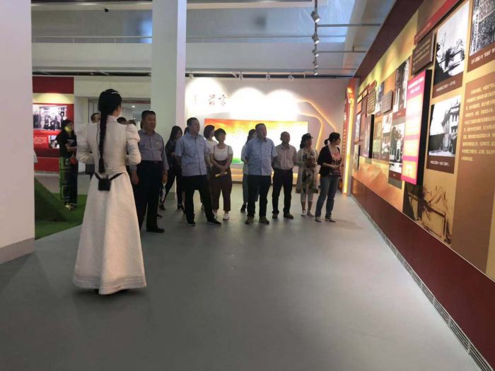 全體人員跟隨講解員介紹,觀看了《紅色足跡》《啟航創(chuàng)業(yè)》《美好記憶》三個部分。170余張歷史照片、180余幅宣傳畫和110余件文獻史料展現了內蒙古各族人民在中國共產黨的領導下進行新民主主義革命和社會主義革命及建設中留下的紅色印記、歷史足跡。