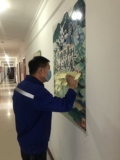 黨支部還制作了祭奠海報,張貼在樓道醒目位置,黨員群眾可以隨時進行祭掃活動,并留下祭掃寄語,祭奠在中國革命、建設(shè)、改革歷史進程中英勇犧牲烈士的同時,致敬在抗擊疫情一線犧牲的醫(yī)護人員、公安干警等"逆行英雄"。