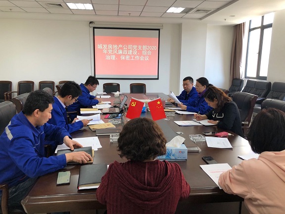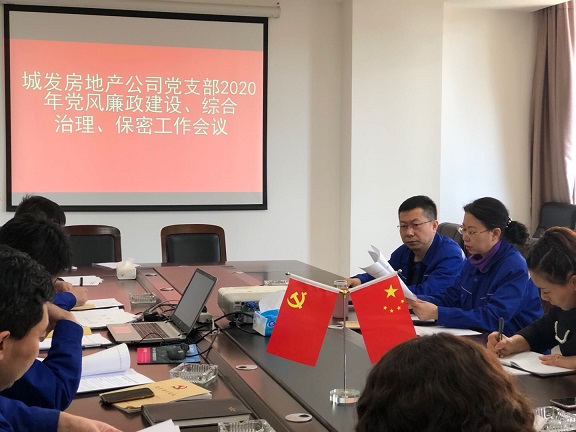 4月23日,房地產公司黨支部在城發(fā)集團11樓會議室組織召開黨風廉政建設、綜合治理、保密工作會議,公司全體黨員干部10人參加了會議。