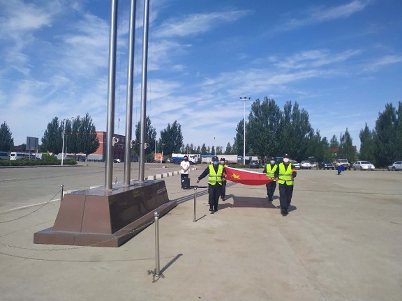 沐浴著晨曦的陽光,我們又走進了七月,迎來了中國共產(chǎn)黨建黨99周年。7月1日上午9時,城發(fā)物流公司惱包園區(qū)全體職工在惱包園區(qū)舉行迎“七一”升國旗儀式。在嘹亮的國歌聲中,五星紅旗冉冉升起,全體職工整齊列隊,莊嚴肅穆地向國旗敬禮,此刻每個人心中都升起了對祖國深深的眷戀和熱愛。在這火熱的季節(jié),火紅的黨旗在飄揚,我們滿懷激情地慶祝黨的生日。