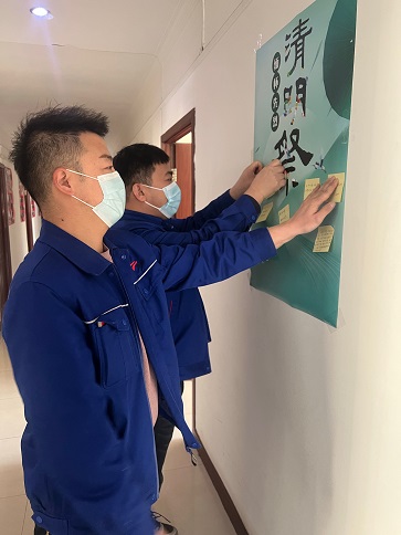 受新冠肺炎疫情影響,避免人群聚集,黨支部制作了祭英烈、宣傳文明祭掃海報(bào),張貼在樓道醒目位置,引導(dǎo)黨員干部在緬懷先輩的情懷中弘揚(yáng)傳統(tǒng)、增進(jìn)愛黨、愛國(guó)、愛社會(huì)主義的情感,通過(guò)留言寄語(yǔ),表達(dá)對(duì)革命先烈的緬懷和崇敬之情,同時(shí)要求黨員干部要以身作則,努力在節(jié)儉治喪、文明祭掃等方面作表率,以實(shí)際行動(dòng)影響和帶動(dòng)身邊群眾,做文明之風(fēng)的倡導(dǎo)者和傳播者,做革除陋習(xí)的先行者、移風(fēng)易俗的推進(jìn)者、文明祭祀的示范者。