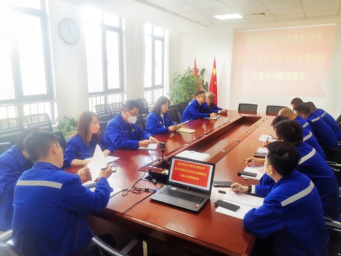 4月20日上午,城發(fā)物業(yè)公司黨支部召開集中治理黨內(nèi)政治生活庸俗化交易化問題通報會,黨支部書記娜仁同志主持會議,黨員、干部、發(fā)展對象和入黨積極分子參加。